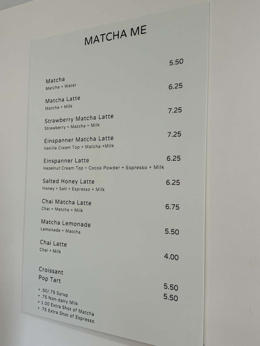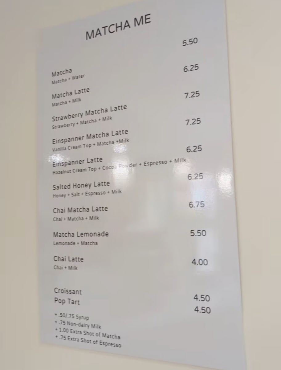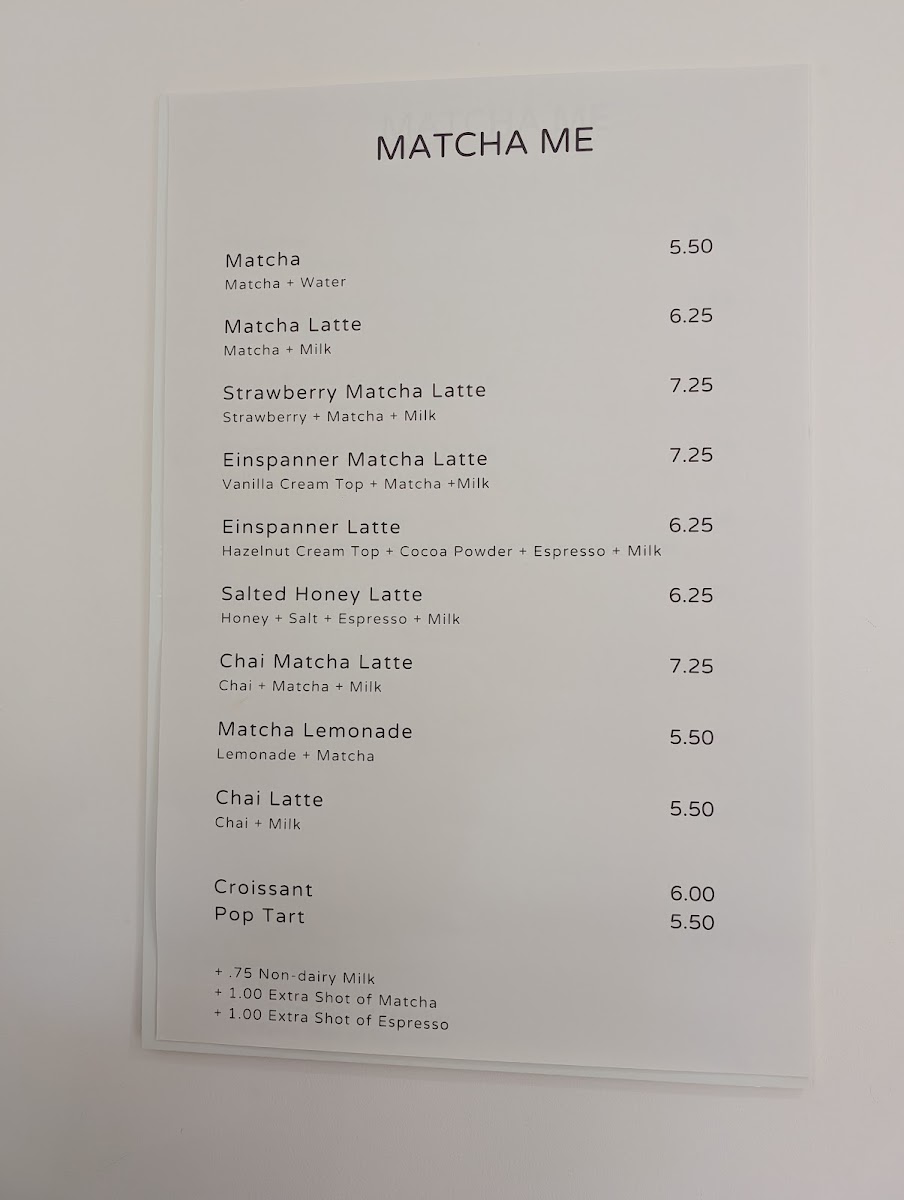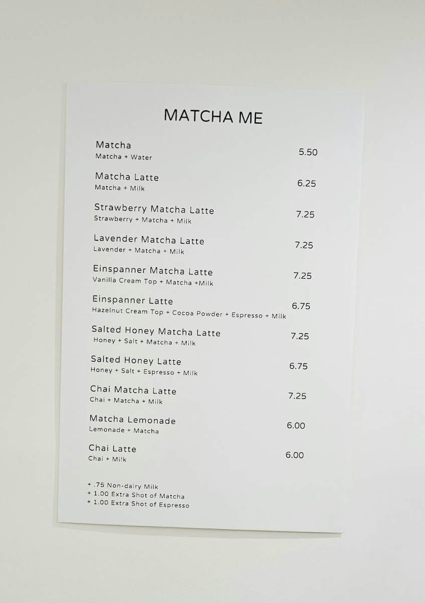 What sets Matcha Me apart is its commitment to serving up a variety of matcha-based drinks, each crafted with top-tier ingredients and a dedication to quality. On the menu, you can find an array of enticing options, from the classic Matcha for $5.50 to the innovative Strawberry Matcha Latte priced at just $7.25. The Lavender Matcha Latte, also $7.25, offers a soothing floral twist that pairs beautifully with the rich, umami flavors of matcha. For those seeking an indulgent treat, the Einspänner Matcha Latte is a must-try, blending layers of creamy matcha goodness that create a delightful texture in every sip.